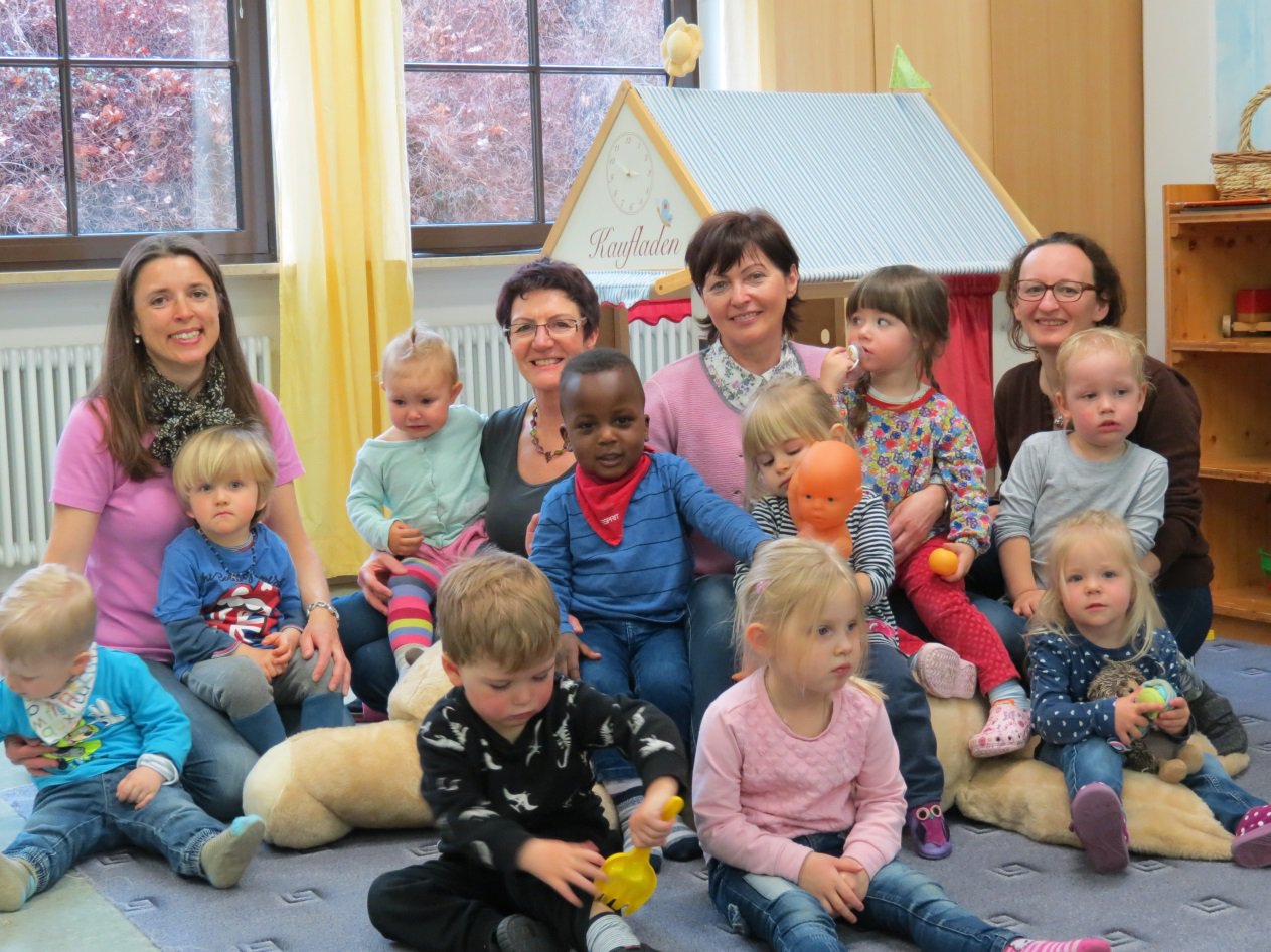 Nach der Eingewöhnung haben die Kinder die Möglichkeit erste Erfahrungen ohne Eltern zu sammeln. Hier hat sich schon manche Freundschaft entwickelt, die dann auch den Eintritt in den Kindergarten erleichtert hat. Eine Gruppe umfasst bei zwei Betreuerinnen 12 Kinder im Alter von ca. zwei Jahren bis zum Eintritt in den Kindergarten. Diese Kinder sind fest für eine Betreuungsgruppe und einen Tag angemeldet.