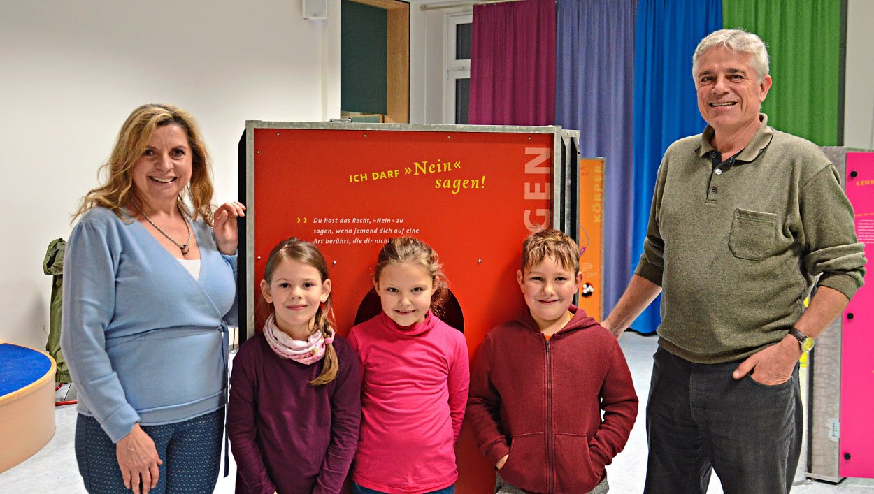 Auf der Wanderausstellung lernen die Kinder, wie sie sich mit einem „Nein“ durchsetzen können. Erwachsenen wird zudem vermittelt, dass sie die Bedürfnisse ihrer Kinder akzeptieren und respektieren müssen. Kinder dürfen in dieser Wanderausstellung vieles selbst ausprobieren. Es gibt zum Beispiel eine Jacke, die mit paar Gewichten versehen wurde. Diese Jacke sollen die Kinder anziehen und damit mal toben. Nach einiger Zeit merken sie, wie schwer diese Jacke wird und die Kinder werden langsamer. „So im etwa fühlt es sich an, wenn man ein schlechtes Geheimnis mit sich rumschleppt oder man Sorgen hat, die man mit niemandem teilen kann“, erklärt ihnen Allmannberger. Auf der Ausstellung wird Kindern aber nicht nur vermittelt, wie sie sich Gehör schaffen können, sondern ihnen wird auch klar gemacht, dass sie wertvolle Menschen sind. Deshalb heißt die Ausstellung auch „Echt Klasse“. PNP− cox
