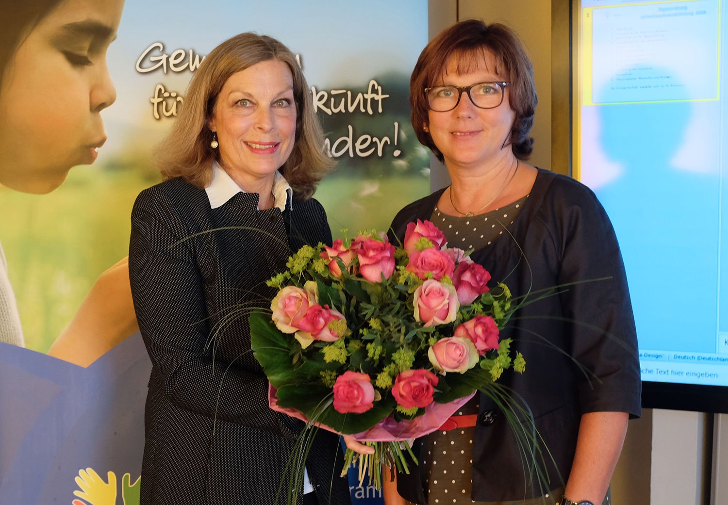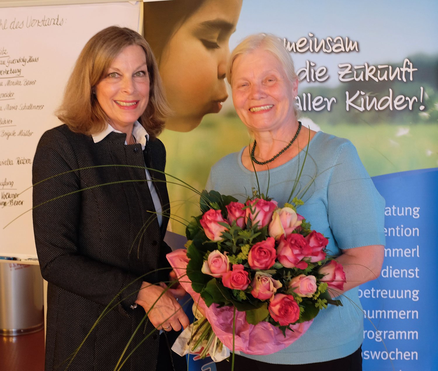Für 25 Jahre aktive Mitarbeit im Kinderschutzbund und im Vorstand des Vereins wurden Frau Christiane Kreilein und Frau Monika Besier mit einem Blumenstrauß geehrt.