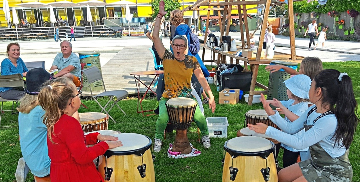 Als am Abend die Schatten schon immer länger wurden, wollten viele Kinder immer noch nicht nach Hause gehen. „Ob beim Trommelworkshop mit Gitti Baumgartner, bei der Zaubervorführung im Gartensaal mit dem Magier Christian Erbersdobler, bei der Tanzaufführung der fetzigen Truppe der Move Too Hot Kids Company von Patrick Grigo oder beim Tüchertanz zu der Musik der Streetband der Musikschule Burghausen unter der Leitung von Peter Berthold – wir freuen uns, wenn wir den Burghauser Familien einen schönen Tag bereiten konnten“, so Christine Auberger vom Haus der Familie. „Und wer sich Spiel und Spaß nach Haus holen will, der kommt einfach im Haus der Familie vorbei und nutzt den Spielzeugverleih der Stadt Burghausen.“
