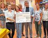 Oliver Sommer (Leitung RT-Reisen) übergibt der 1. Vorsitzenden des Kinderschutzbundes Gwendolyn Huss die Spende in Höhe von 550 Euro