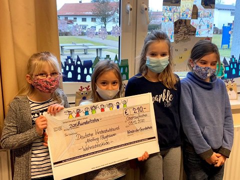 Stolze 210 Euro kamen auf diese Weise am Ende zusammen – eine Summe, die Schulleiter Christian Hofer sowie vier Schülerinnen jetzt stellvertretend für die ganze Schulfamilie an den Burghauser Kinderschutzbund überreichten.