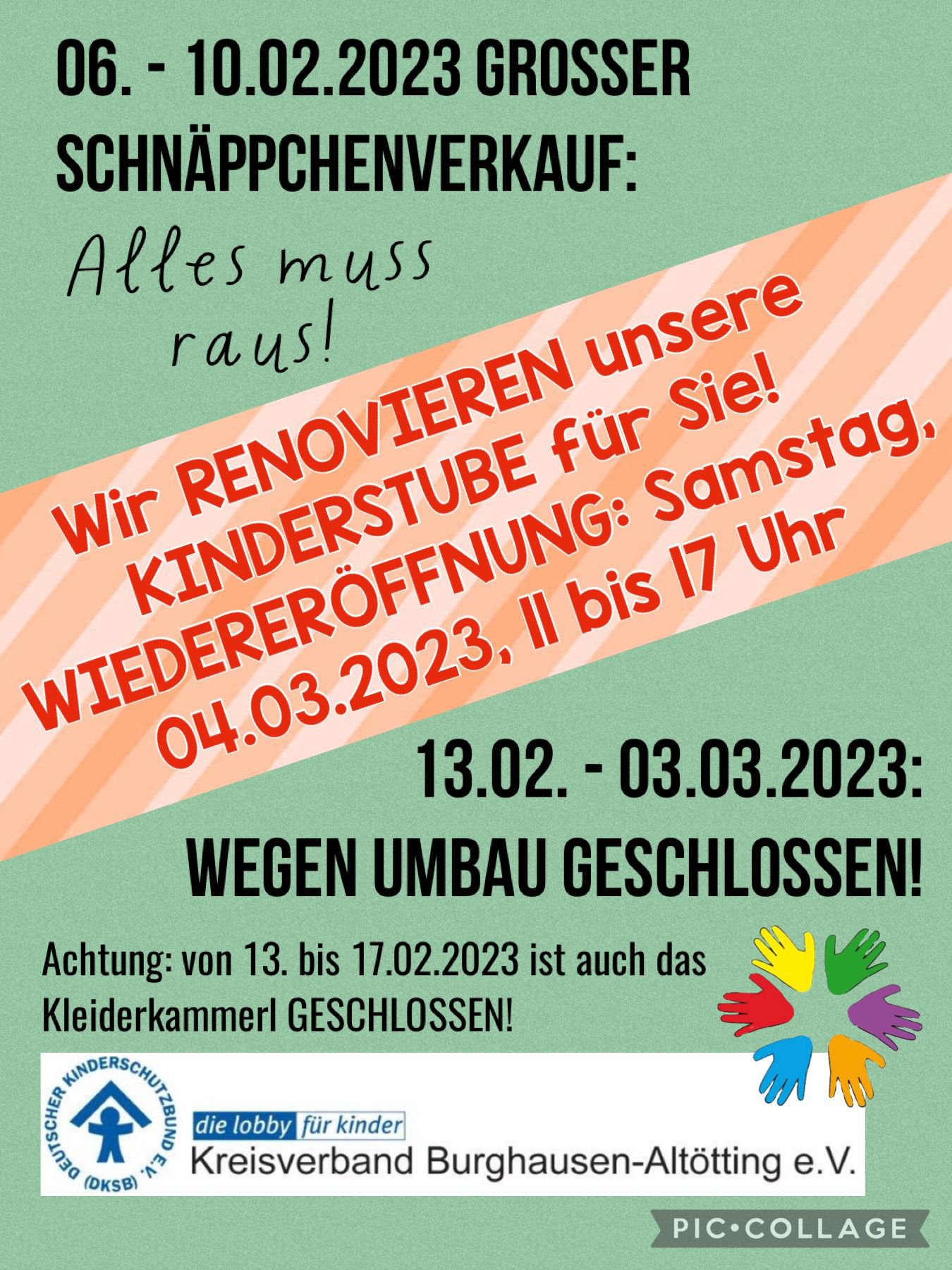 Vom 13.02. - 03.03.2023 bleibt die Kinderstube wegen Umbau geschlossen!