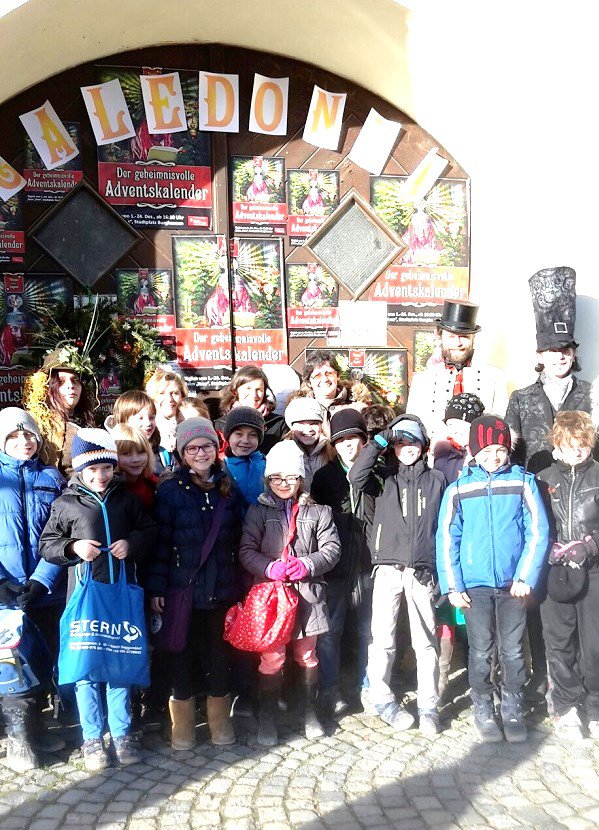 Unter diesem Motto haben wir unter anderem Beiträge unserer Kinder aus den Grunschulen im Landkreis zusammengetragen. Unter allen Beiträgen die uns die Kinder zugesandt haben, wurde im Losverfahren ein Preis ausgegeben. Die Klasse 4b der Kammererschule in Burghausen konnte somit den letzten Schultag vor den Weihnachtsferien die Märchenlesung "Geheimnisvoller Adventskalender" in der Altstadt besuchen. Vorgetragen wurden 2 Märchen und in der Pause konnte sich die Klasse bei einer Tasse warmen Kakao stärken.